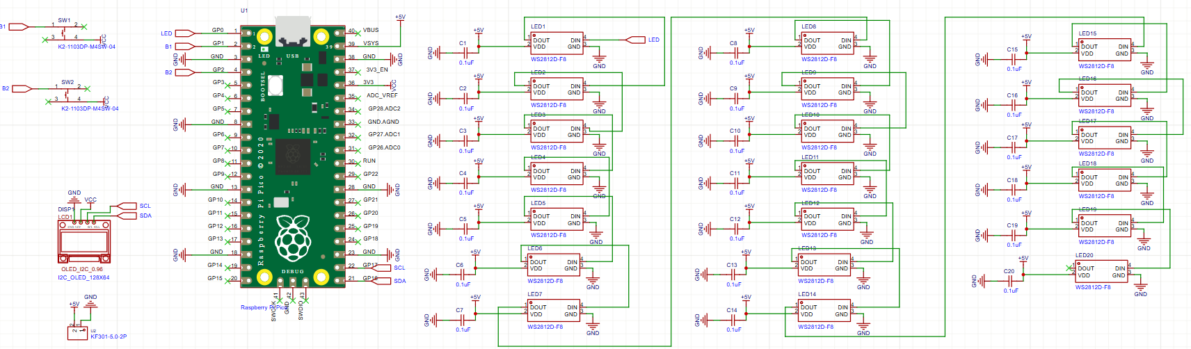 The table below lists all the components required for this project. For the WS2812 4-pin F8 addressable LEDs, please double-check the pinout, as it may vary depending on the manufacturer.