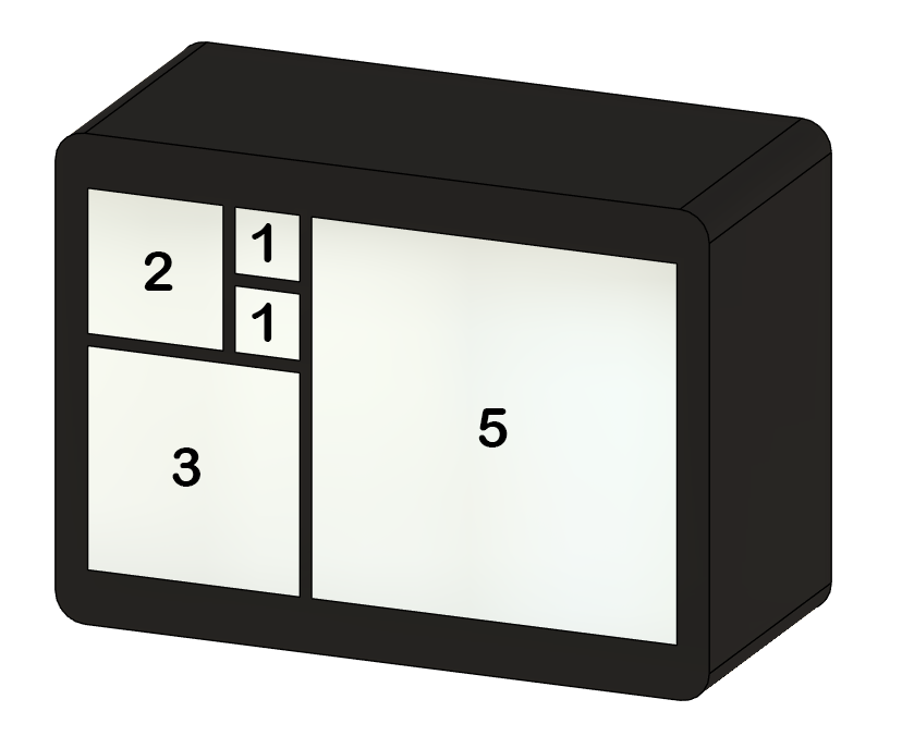 I designed the enclosure for the clock first. While this might sound unusual to do before designing the PCB, the reason is straightforward: by designing the enclosure first, I could define the five blocks that represent the Fibonacci sequence, then export the front face as a DXF file.