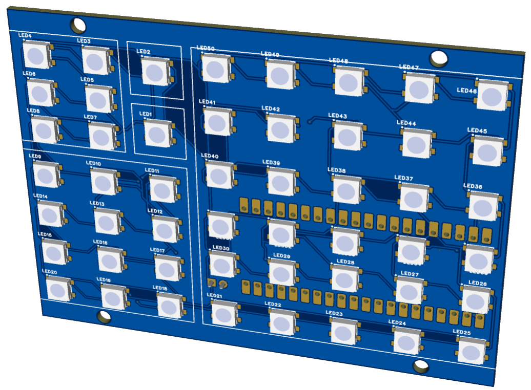 This DXF was later used as a reference when designing the PCB, ensuring that the LEDs are positioned correctly behind each block.